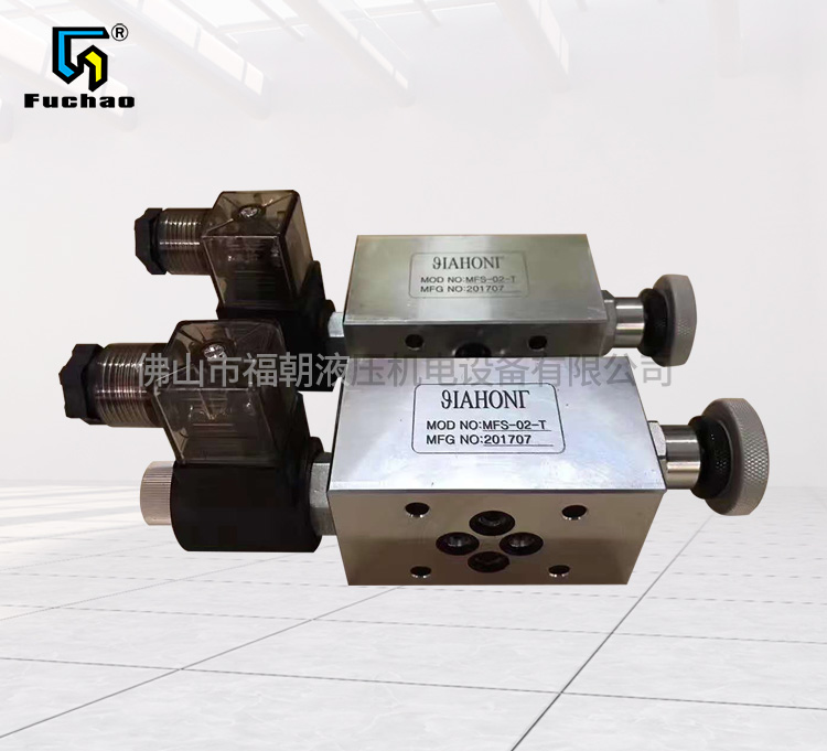 2、电磁控制调速阀SF系列是由可调流量控制阀和电磁换向阀所组成的电磁两段式调速阀,平时流量大小可控制,电磁阀动作时,液流可自由通,应用于执行机构需慢速、急速两段之速度控制的场合,适用于射出机关模回路、压床、工作母机等。